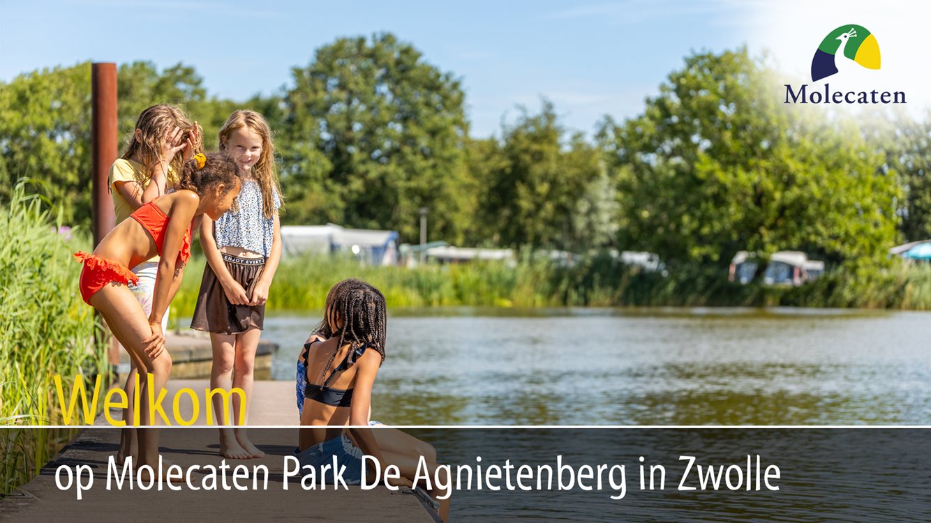 Molecaten Park De Agnietenberg ligt in een verrassend mooi natuurgebied aan de rand van Hanzestad Zwolle. Via het bos van de ‘Agnietenberg’, met oude bomen en mooie bospaden, bereik je de entree van de camping. De ligging aan de meanderende Overijsselse Vecht en de Agnietenplas (