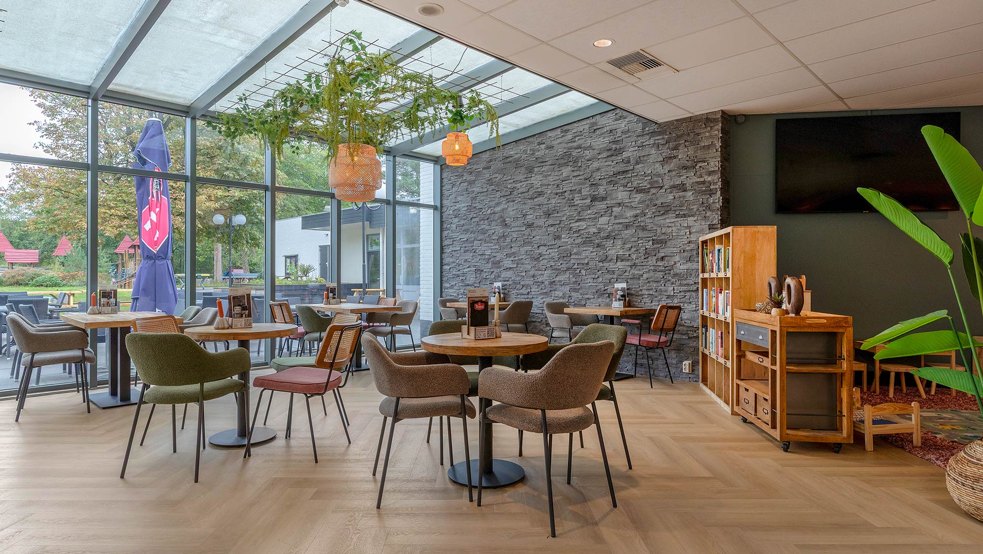 Molecaten Park Landgoed Ginkelduin in Leersum! Stap tijdens een fietstocht of wandeling bij ons binnen voor een overheerlijke kop koffie, thee of chocolademelk met iets lekkers, een uitgebreide lunch, een lekker lang diner of een goed glas wijn. Het is er lekker genieten terwijl de kinderen zich vermaken in de binnenspeeltuin Rinkel de Ginkel of buiten in speeltuin Ridder Roelof met airtrampoline.