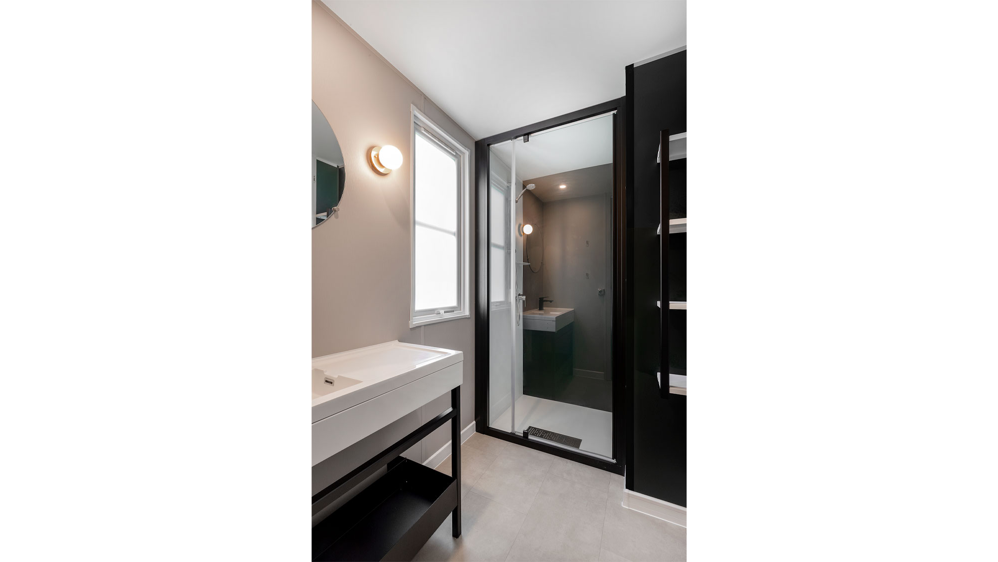 badkamer met douche en wastafel